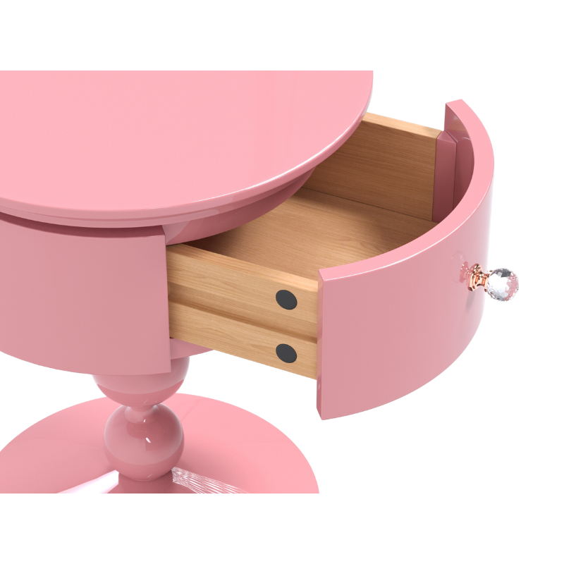 Тумба Скорца изготовлена из массива березы и МДФ, покрашена эмалью. Верхнее покрытие – идеальный глянец. Выдвижной ящик на деревянных направляющих.